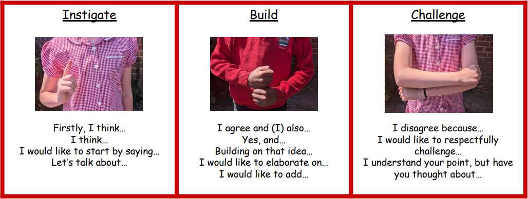 Through a variety of talking structures, children learn to embrace different roles in discussion and dialogue. Using taught talk tactics, they challenge ideas respectfully, build upon one another’s thoughts, ask probing and clarifying questions, and summarise speech effectively — ensuring that every voice is heard.