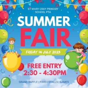 The SMCPA PTA Summer Fair 2023 will take place from 2:30pm - 4:30pm on Friday 14th July 2023