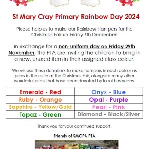 Please help us to make our Rainbow Hampers for the Christmas Fair on Friday 6th December!