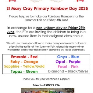 Please help us to make our Rainbow Hampers for the Summer Fair!
