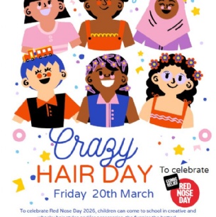To celebrate Comic Relief Red Nose Day 2026, on Friday 20th March we have decided to have a "crazy" hair day at St Mary Cray Primary Academy.